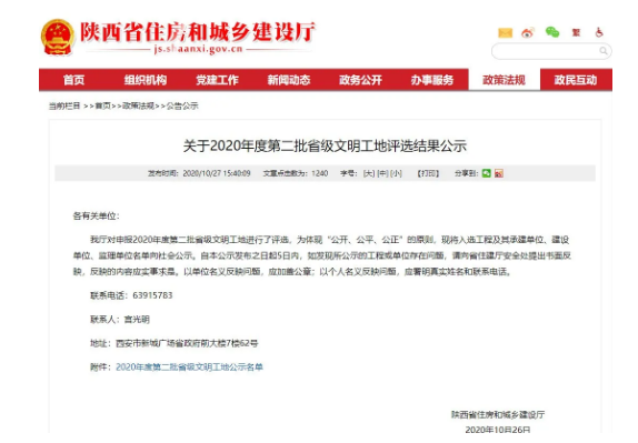 陜西省住房和城鄉(xiāng)建設(shè)廳公示了